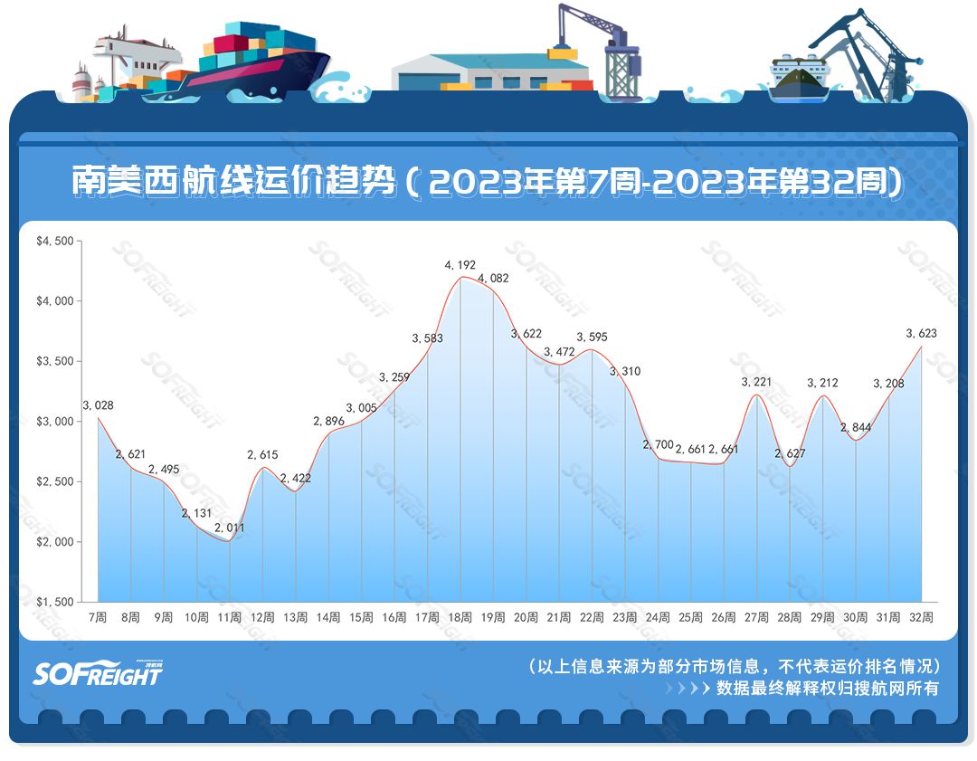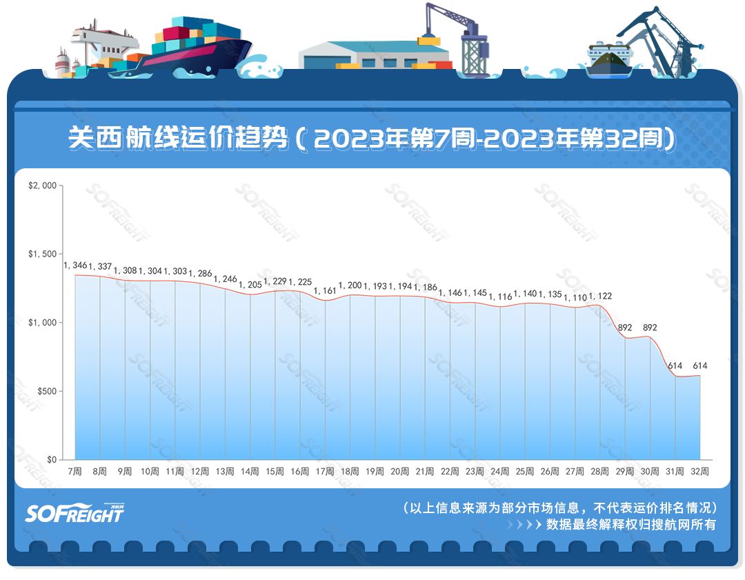 搜航網(wǎng)2023年第32周運價趨勢(航線篇)發(fā)布啦!