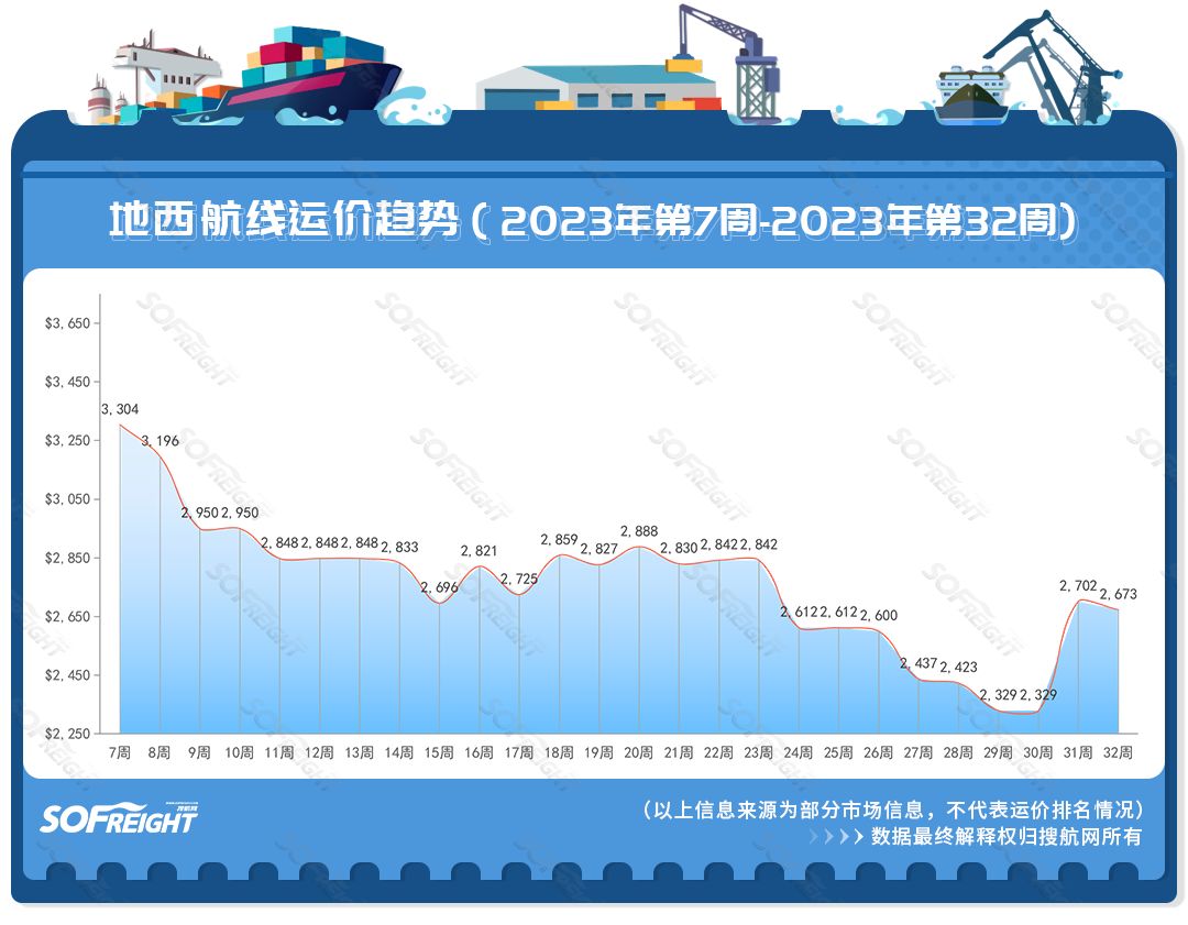 2023年第32周運價趨勢(航線篇)
