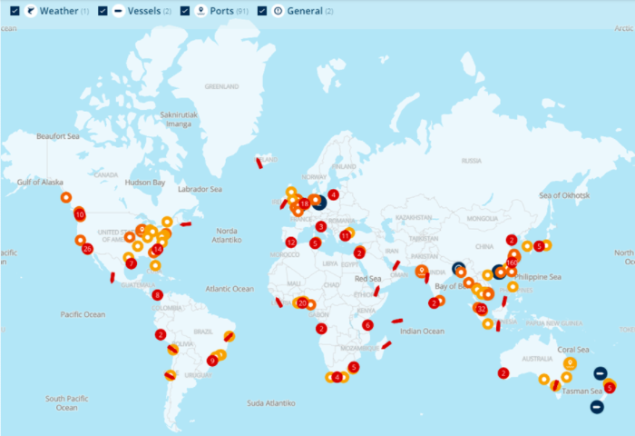 物流巨頭Kuehne+Nagel的Seaexplore大數(shù)據(jù)平臺(tái)最新顯示,由于臺(tái)風(fēng)暴、港口霧、疫情等原因,8月11日,由于各大洲許多港口面臨運(yùn)營(yíng)中斷,全球主要航運(yùn)公司有392多艘 船在港口外排隊(duì)。