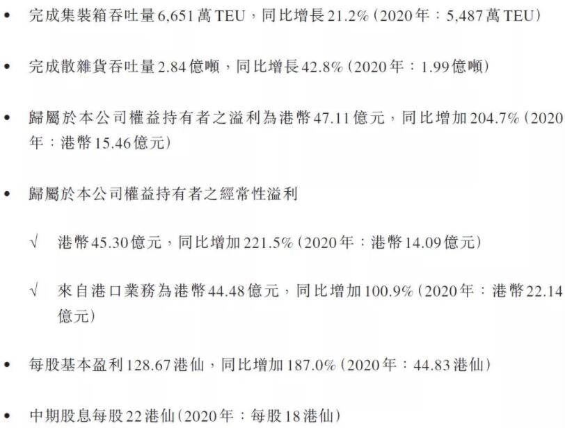 招商局港口2021年上半年主要經(jīng)營數(shù)據(jù)