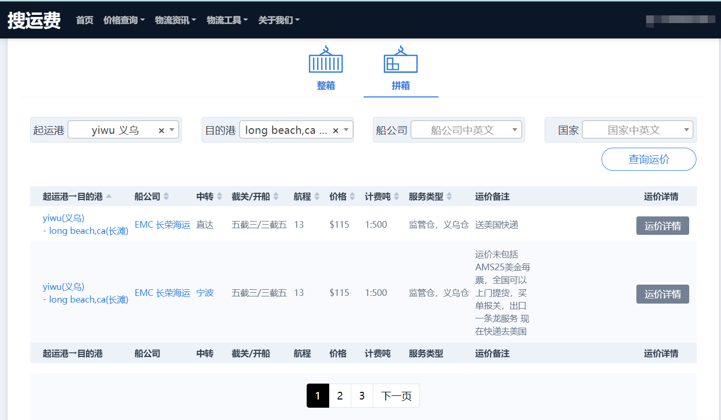2.推薦訂艙平臺:搜索運費運費搜索平臺(www.sounfei.com)